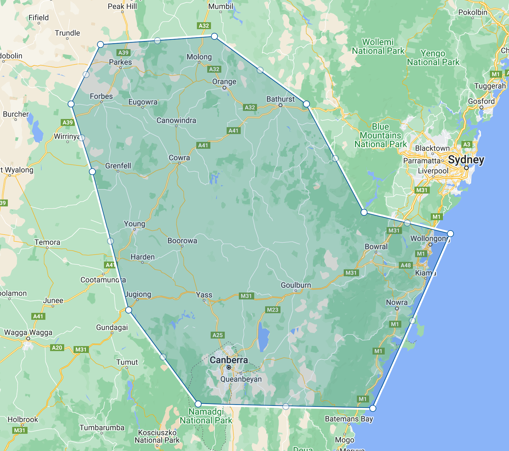 - Central West - Orange, Bathurst, Blayney, Parkes, Forbes, Grenfell